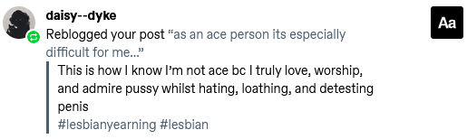 oh wow. what an insightful comment you've decided to share. to an asexual person. who just expressed not really liking to think about genitals. great job 👏