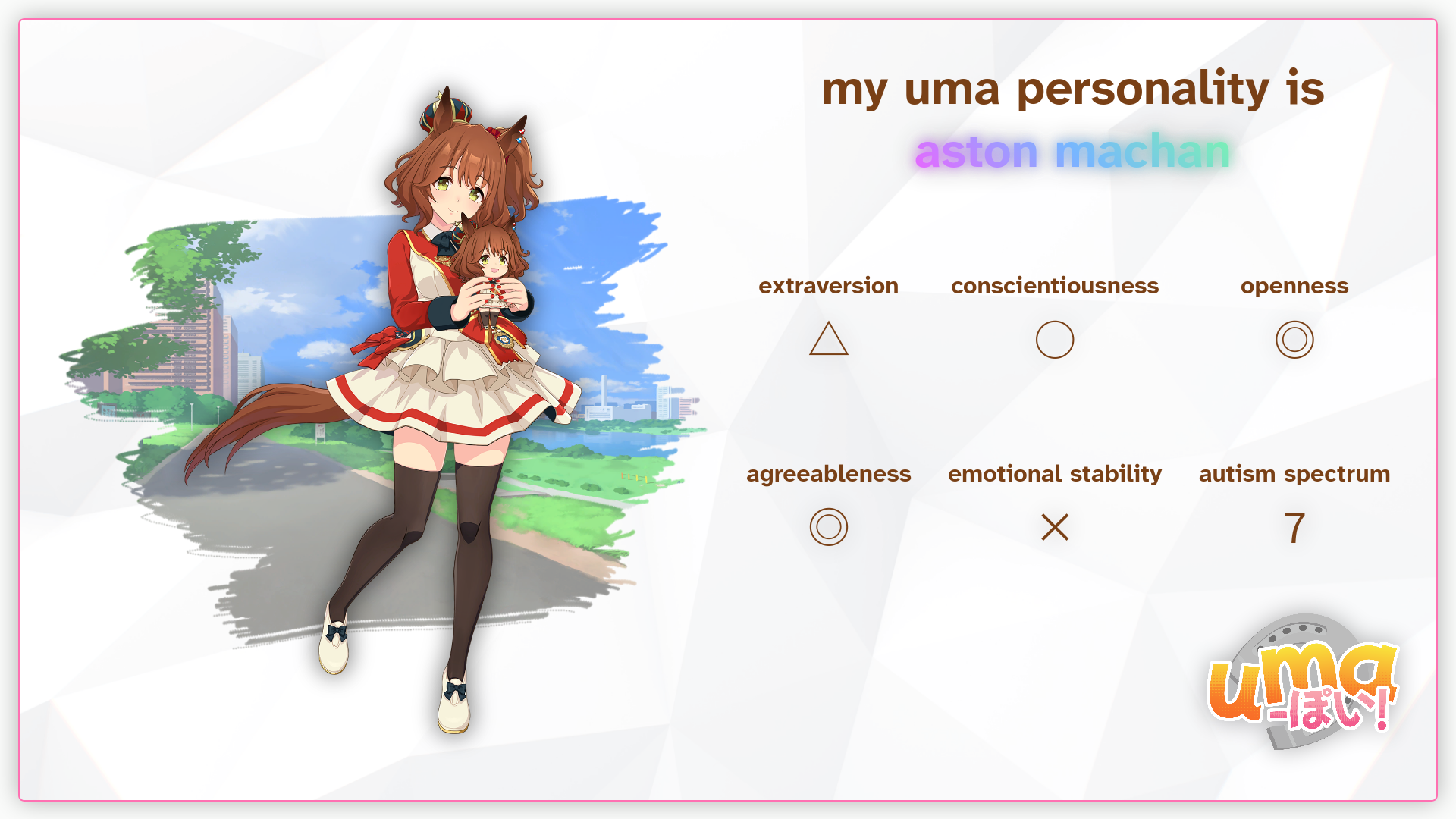 (link to the quiz if anyone wants it: http://umapoi.moe/)