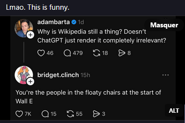 idk when we’re at the point where you’re like "haha you’re like those stupid lazy fat people in wheelchairs" (who are victims of the ai-enabled system they were born in btw) sounds like le funny epic inspiring clapback I think you should maybe be asking yourselves some questions